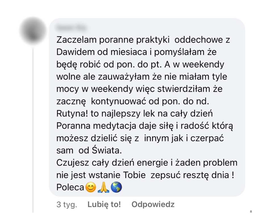 W drodze swojego rozwoju ukończyłem psychologię i liczne kursy. Odkryłem, że pierwsza godzina dnia ma ogromny wpływ na cały jego przebieg! I zainicjowałem zajęcia "PORANEK MOCY"